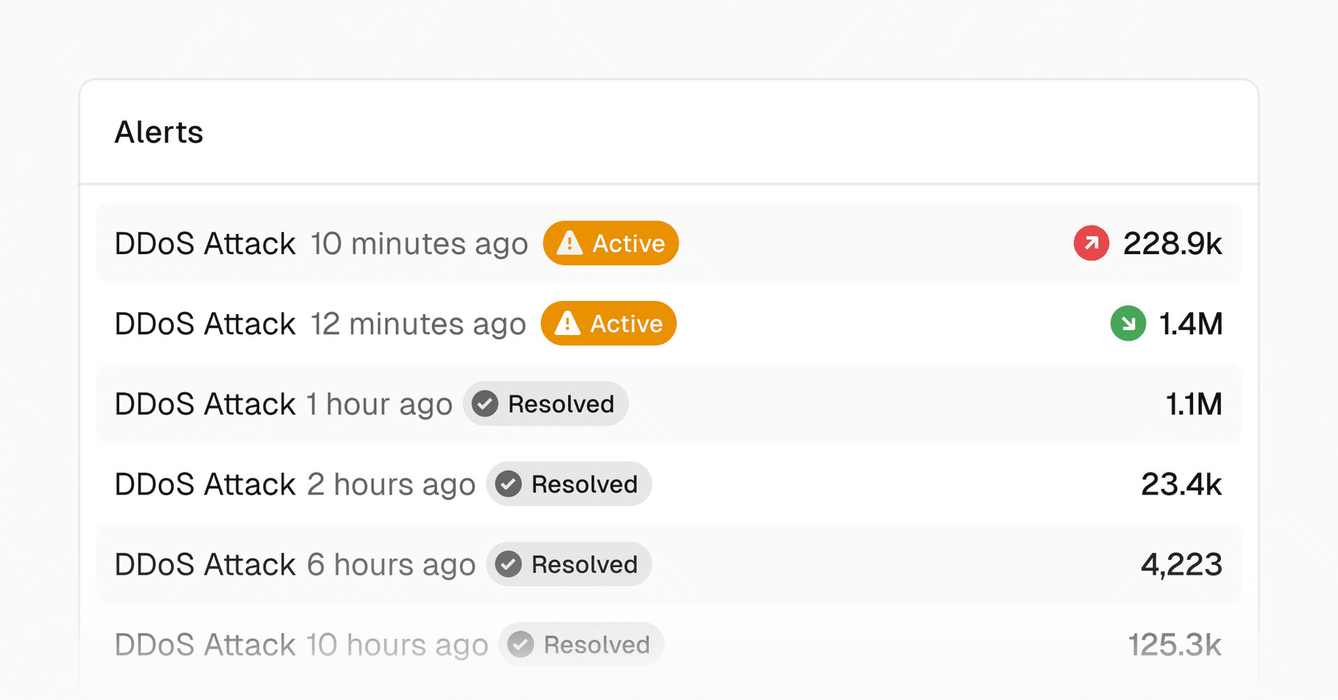 Alerts shows recently mitigated DDoS attacks