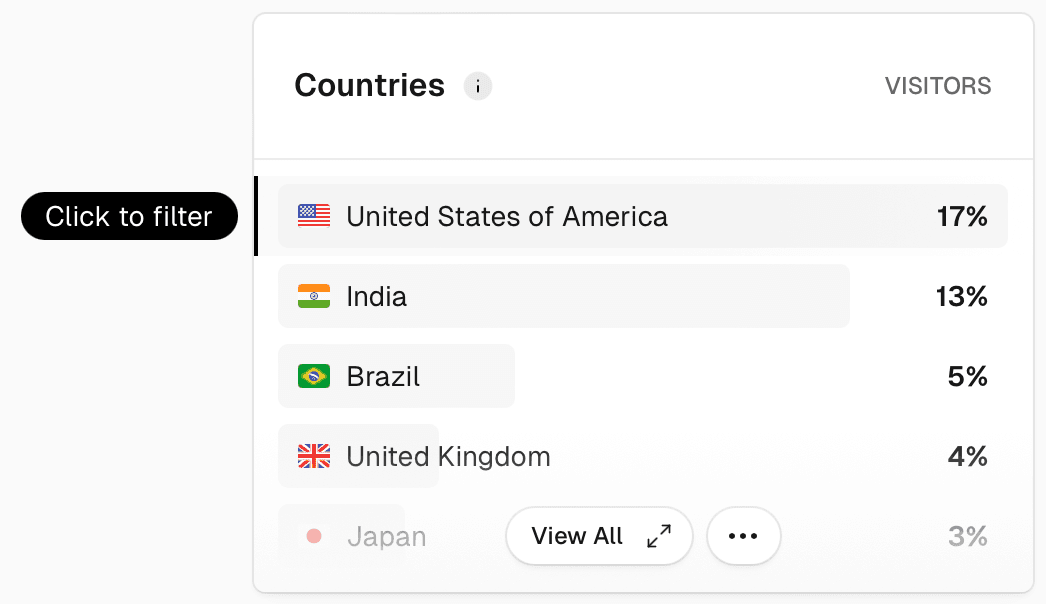 - Go to the Countries panel, select View All to bring up the filter box.