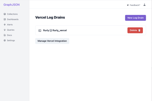 Send logs from your Vercel apps to GraphJSON for easy debugging, troubleshooting and alerting.